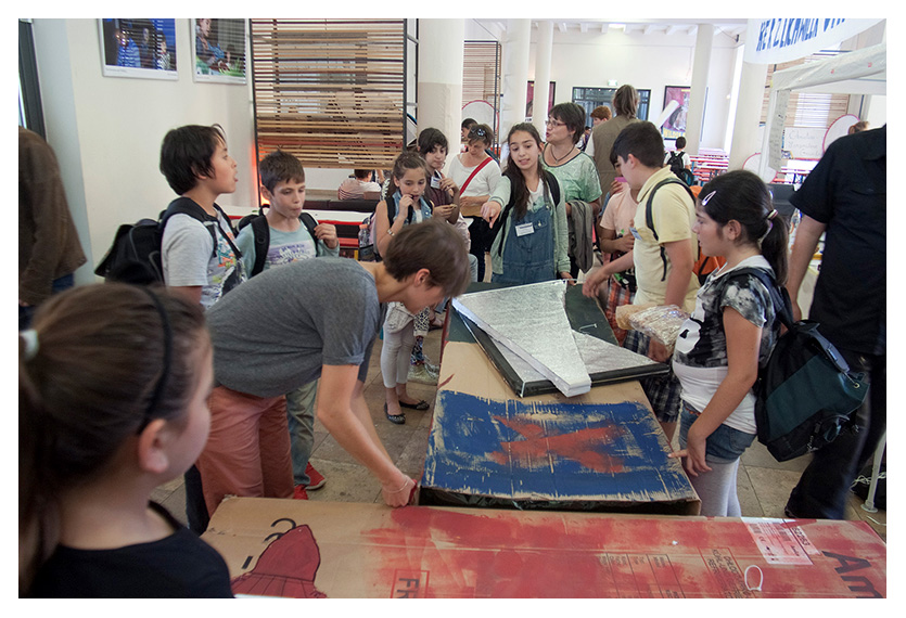 Und am Ende ist das selbst gebaute Raumschiff zusammen mit der Klasse 5a der Galilei-Grundschule mit der U-Bahn in deren Klassenzimmer nach Kreuzberg gefahren!